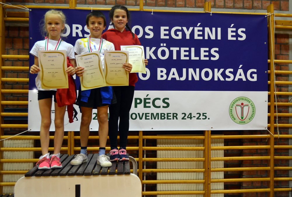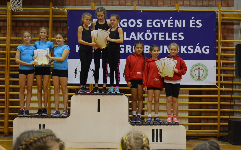 A 2018/19-es versenyévad első megmérettetésére 31 versenyzővel utaztunk Pécsre (sajnos egy csapatunk betegség miatt nem tudott indulni). A felkészülés párhuzamosan zajlott a két héttel korábbi, müncheni nemzetközi versenyre készüléssel, nem kis feladatot adva felkészítőknek és versenyzőknek egyaránt. Az országos bajnokság első napján az egyéni verseny zajlott reggel 9-től késő estig. Az utolsó versenyző este 8 óra 10 perckor jött le a pályáról! Hajnali kelés, utazás, egésznapos várakozás, izgulás a többiekért, s magáért – s este produkálni a legjobbját, nem semmi kihívás! A négy korcsoportban összesen 19 egyéni versenyzőt indítottunk. A rendkívül népes (30-40, sőt volt ahol60-nál is több induló egy-egy korcsoportban) mezőnyben pár pontnyi eltérés is sok-sok helyezés beli különbséget jelentett, így az első 10-be kerülés is komoly teljesítmény volt. Az egyéni versenyben 13-szor szólítottak ki mórahalmi versenyzőt az eredményhirdetéseken, összetettben 11-en végeztek a legjobb 10 között: