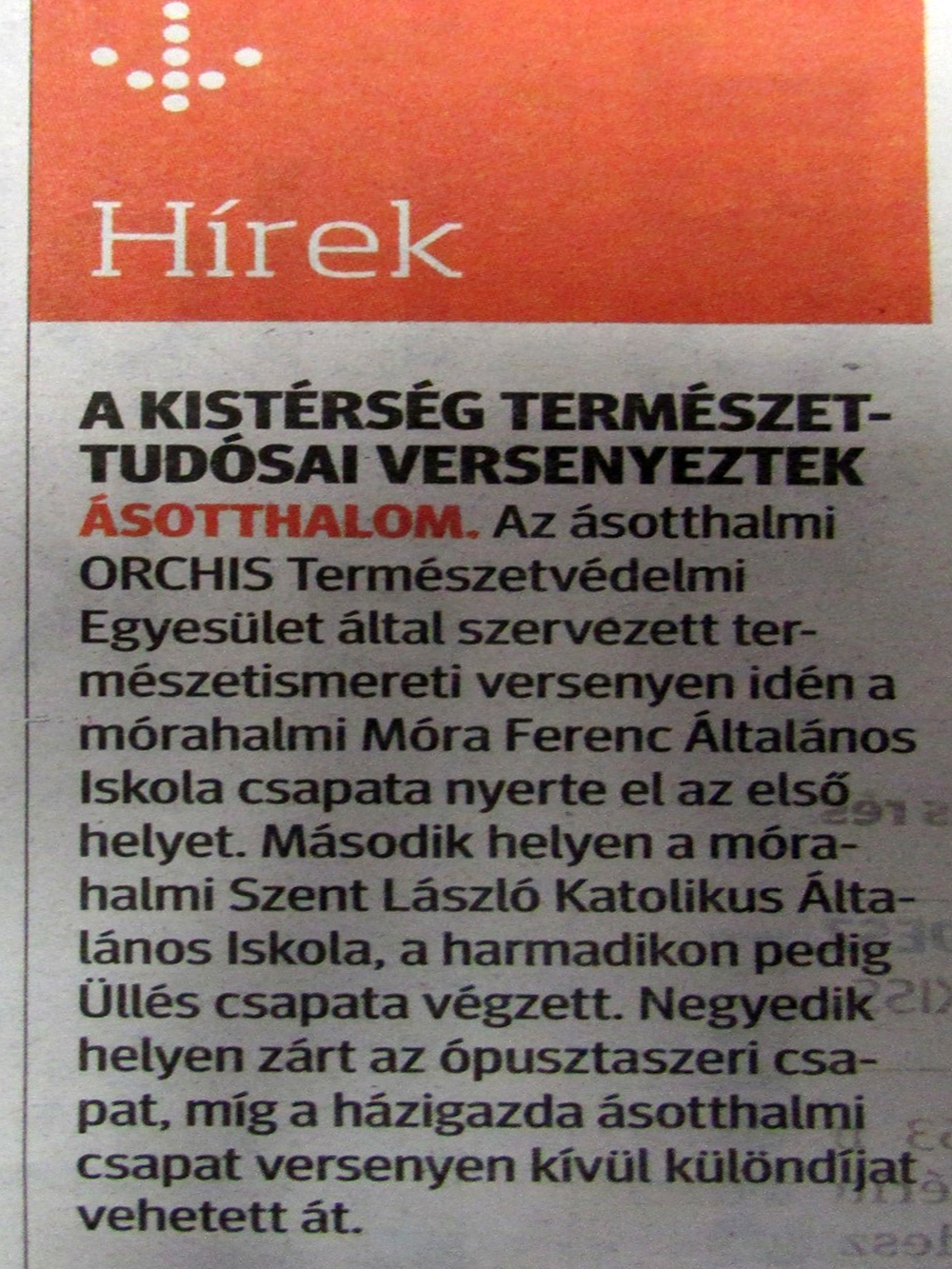 Az eseményről a Délmagyarország c. napilap november 20-i száma is hírt adott „A kistérség természettudósai versenyeztek” címmel.