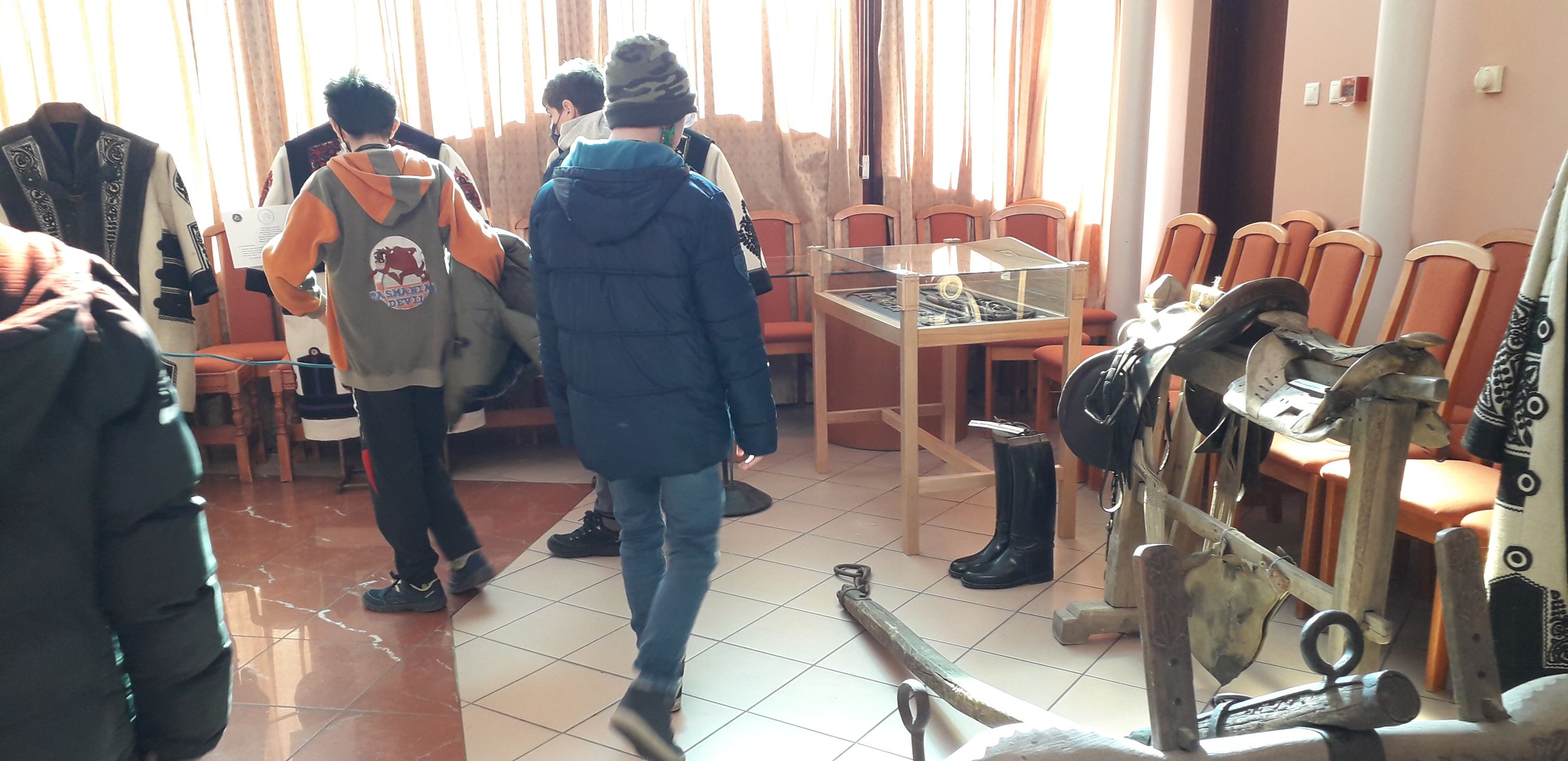 A gyerekek érdeklődéssel figyelték, hogy a pásztorkodáshoz mennyiféle eszköz szükséges, melyik mire való, milyen igényes díszítésekkel látták el egykor a mindennapi használati tárgyakat is. A karikás ostorok nyele és az ostor fonása, a bőrből font lószerszámok és a cifraszűrök motívumai csodás kézműves remekek. Ezek a mesterségek ma is tanulhatók, ostorra, nyeregre, lószerszámokra mindig szükség lesz, a cifraszűr hímzésének egy-egy részletét pedig elfogadnánk egy szép ruhára varrva is. Az ostorpattogtatást pedig mindenki szívesen kipróbálta volna. Ötödikes lányka felismerte, hogy a nagypapa is ilyen, a kiállításon látott kampósbottal szokta elkapni a kisbárányok lábát, ha meg kell közelebbről néznie a báránykát. Szerencsére a mai gyerekeknek is vannak a régi tárgyakhoz kötődő élményei akár a lovardából, akár hagyományőrző rendezvényekről vagy a családi gazdaságból.