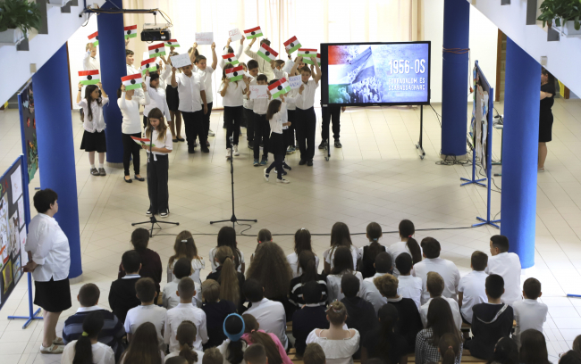 A 4.b osztályos tanulóknak köszönhetően emlékezett az iskola közössége a forradalom és szabadságharc eseményeire.
