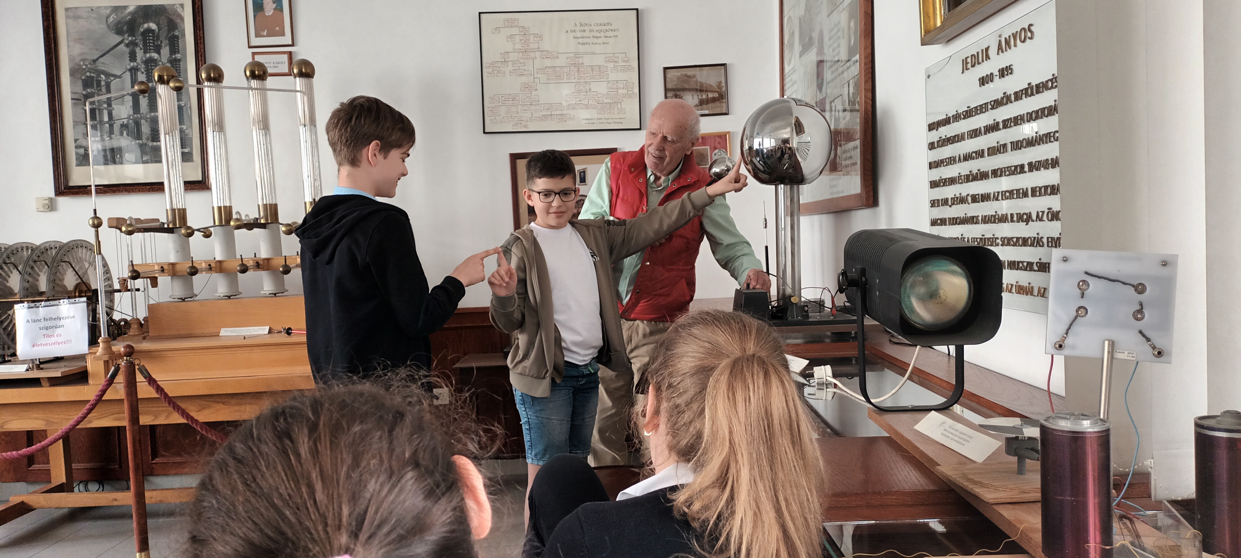 A verseny után egy professzor körbevezetett bennünket a Jedlik Ányos teremben, ahol érdekes kísérletek részesei lehettünk pl.: villámot csináltunk… . Az előadás után egy rövid ebédszünet következett, majd a várva várt eredményhirdetés! Feszültek és izgatottak voltunk, ám nagy volt a meglepetés, amikor a 2. helyen szólítottak bennünket. Visszafelé nagy örömmel beszéltünk a versenyről, a továbbjutásunkról. Nagyon elfáradtunk, de megérte ezért az élményteli napért!