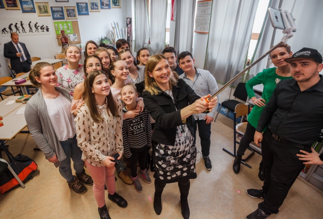 „A Digitális Iskola Programmal a gyerekek jövőjét építjük” mondta Amanda Nelson. Erről meg is győződhetett, amikor az ünnep délutánján ellátogatott iskolánkba, és megtekintette a DIP harmadik ajándék foglalkozását. 20 tanulónk ismerkedett a "vloggerkedéssel" Bombera Krisztina és Tábori Ádám segítségével, ahol a videokészítés technikai rejtelmei mellett, az igényes mondanivalót, hasznos üzenetet tartalmazó vlog készítését is gyakorolták. Köszönjük a Vodafone Magyarország Alapítványnak a tartalmas, élményteli programokat.