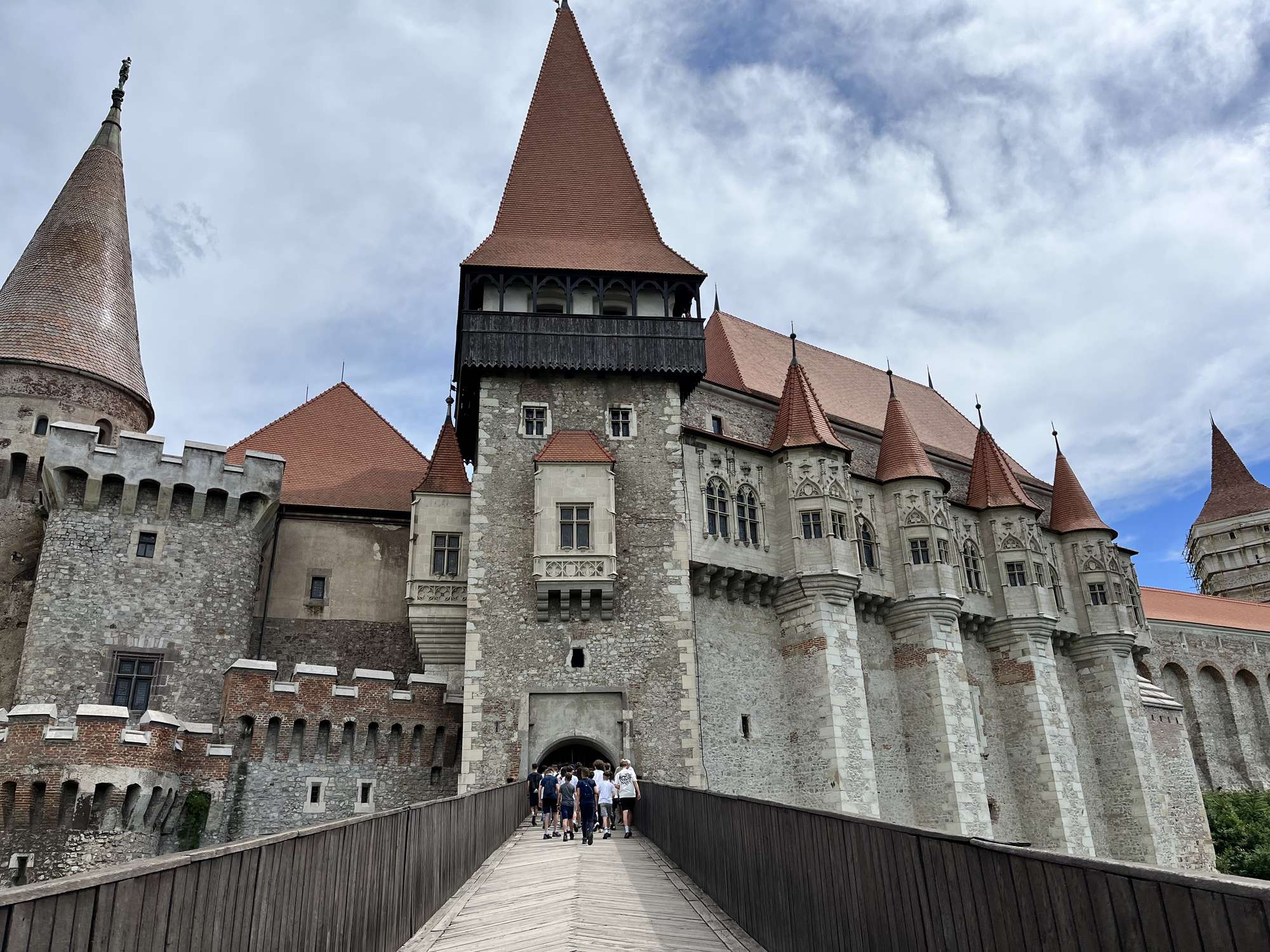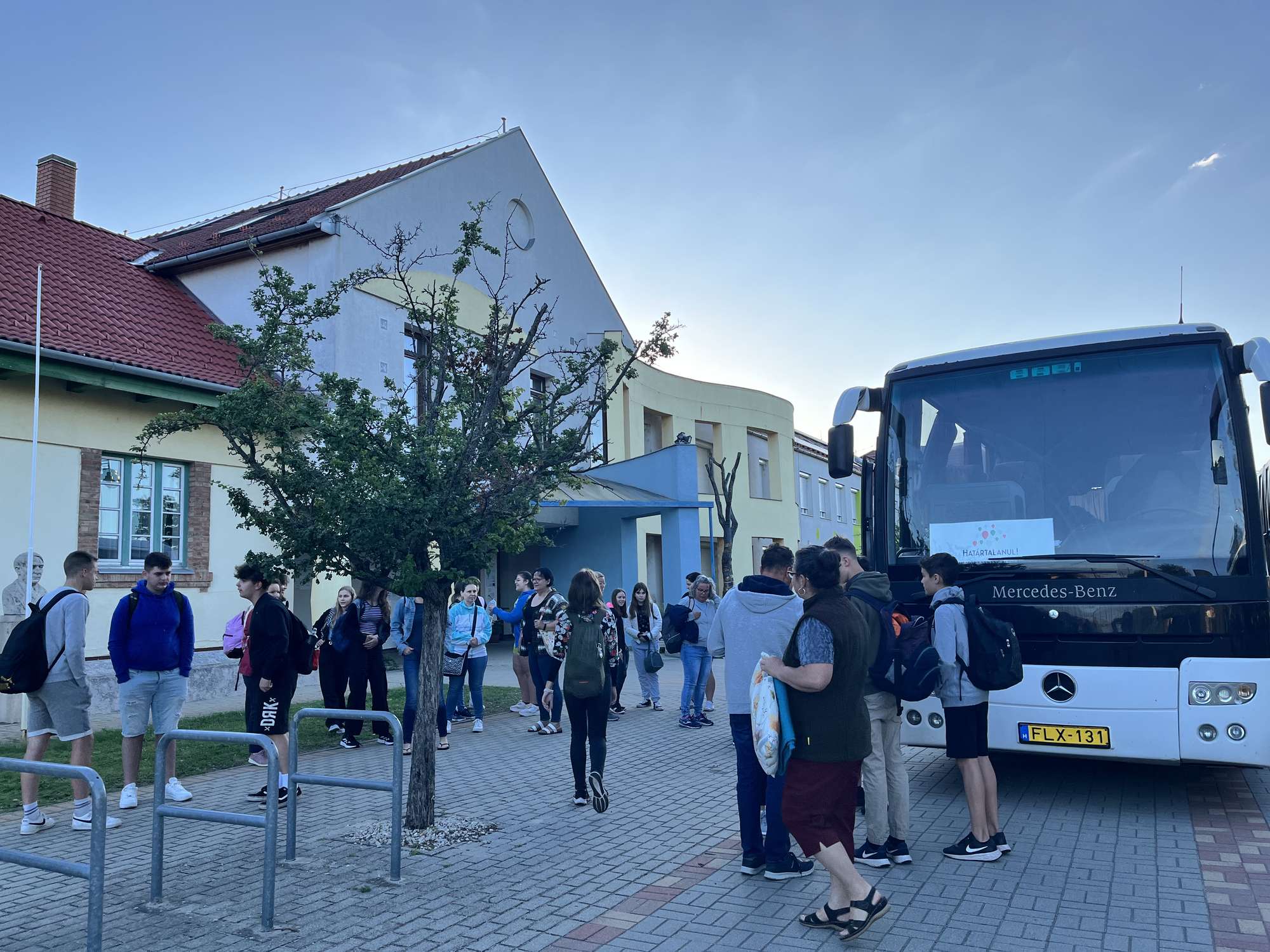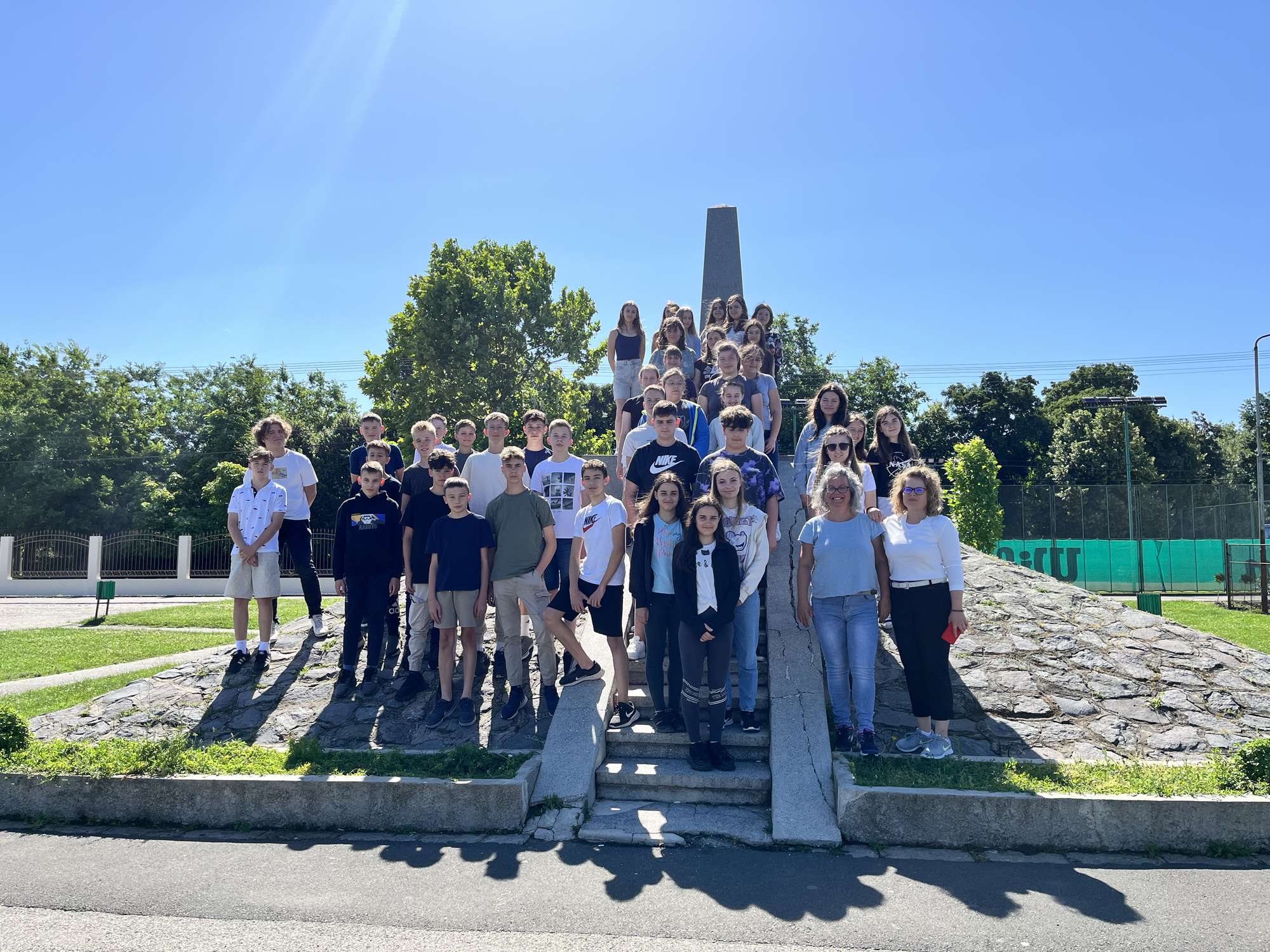 Vasárnap reggel indultunk 44 fős csoportunk Erdélybe. Az első megállónk az aradi vértanúk emlékhelye volt. Az emlékobeliszk előtt megemlékeztünk az 1848/49-es szabadságharc végén kivégzett honvéd tábornokairól, majd koszorút helyeztünk el az emlékműn. Ezután meg sem álltunk magas Déva váráig, ahol a felvonó meghibásodása miatt csak gyalog tudtuk meghódítani a várat. A vár kapujánál felidéztük a 6. osztályban tanult Kőmíves Kelemenné népballada történetét. Következő úti célunk a Hunyadi család erdélyi központja: a lélegzetelállító Vajdahunyad vára volt. Közösen csodáltuk meg a középkori várépítészet remekműveit, a gótikus lovagtermet és várkápolnát. Az első éjszakát Algyógyon töltöttük. Vacsora előtt megcsodáltuk a szálláshely udvarán található a 16. században épült református templomot és Erdély legkorábbi 12. században épült kerektemplomát. A hosszú út ellenére maradt még energia egy kis sportra is, vacsora után röplabdázásra, tollaslabdázásra az udvaron.